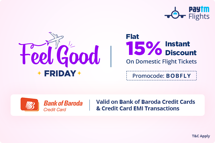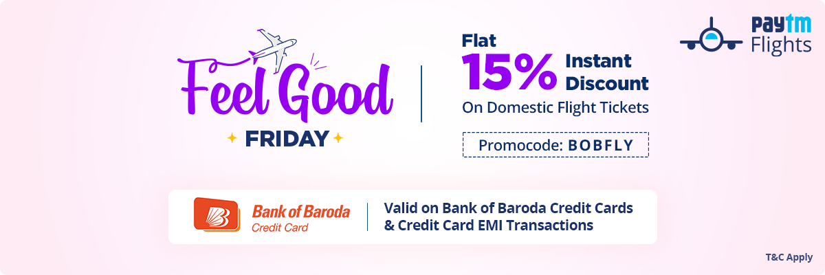 - Use promo code BOBFLY on domestic flight ticket booking to avail flat 15% off up to Rs. 1,600.